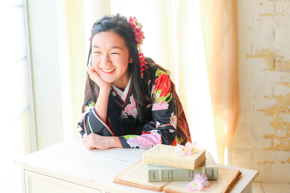 松戸市のおしゃれな写真スタジオ「アンズガーデン松戸店」に「娘が着てみたいと思う衣裳が多かった」と、小学校卒業のお祝いでお越し下さいました。