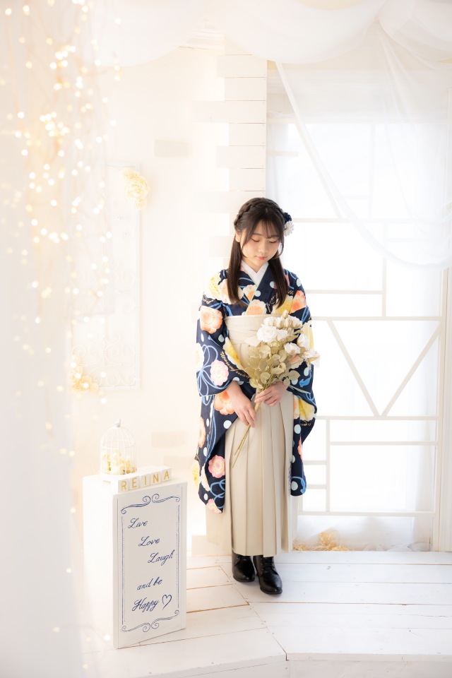 横浜店人気のホワイトスタジオで袴姿のお嬢様をお撮りしたポートレートです。
