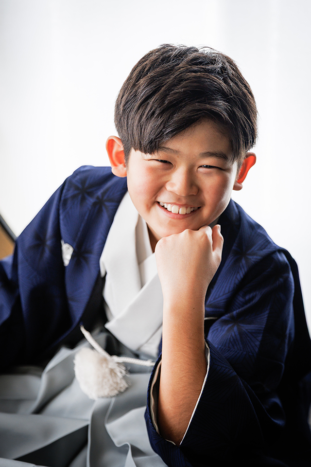 紺色の袴をお召しになった男の子様。お一人撮影に加えて、ごきょうだい3人でも撮影を楽しまれました。