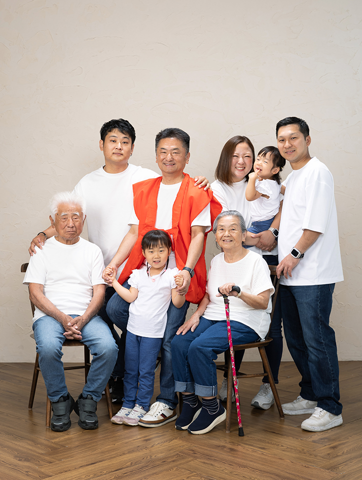 ご家族様の”卒寿”や”還暦”、バースデーをお祝いしてのご集合撮影は、洋服をおそろいにされ、ご家族様の仲の良さが引き立っていらっしゃいました。