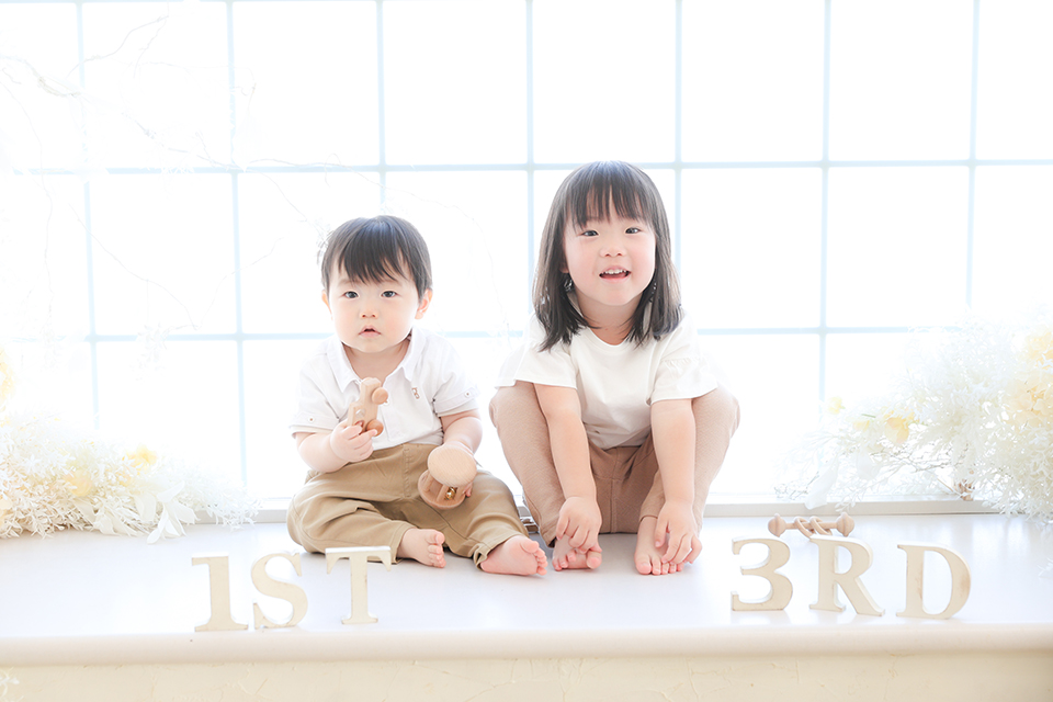 千葉市美浜区のおしゃれなフォトスタジオ「アンズガーデン幕張本店」に1才バースデーのお祝いでお越し頂いたごきょうだい様です。