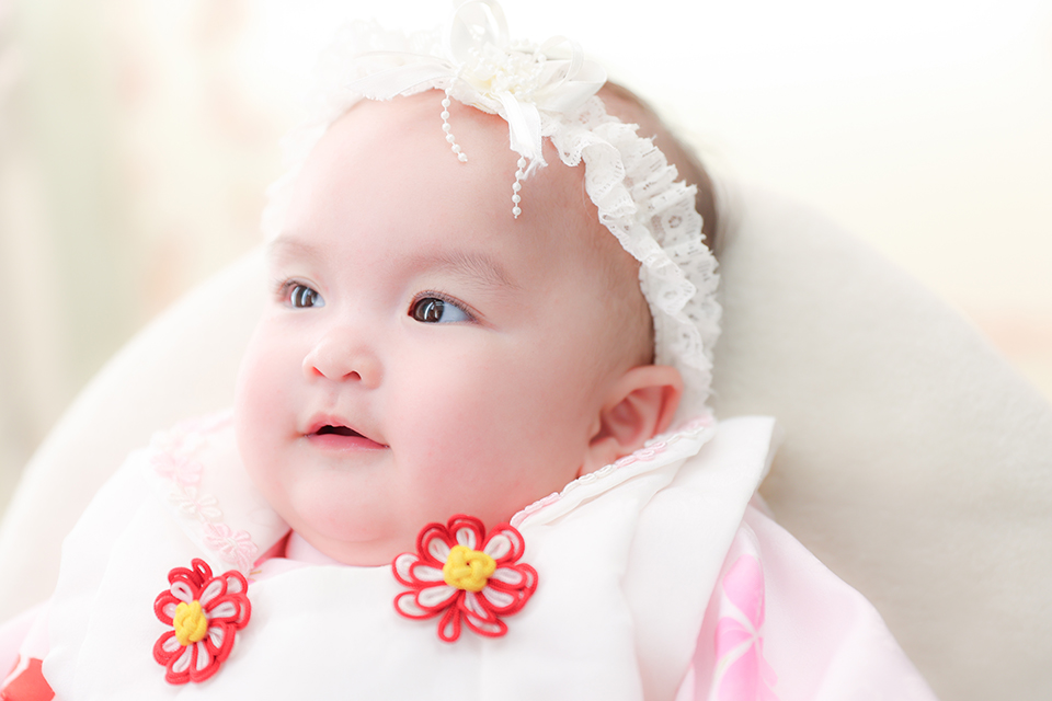 市川市にあるおしゃれな写真館「アンズガーデン市川店」にハーフバースデーのお祝いでご来店されたお嬢様です。